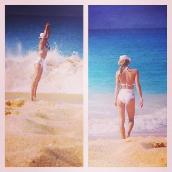 Na objavljenoj fotki Dubravka pozira na peščanoj plaži u belom dvodelnom kupaćem kostimu, a njena vitka linija dolazi do izražaja.
