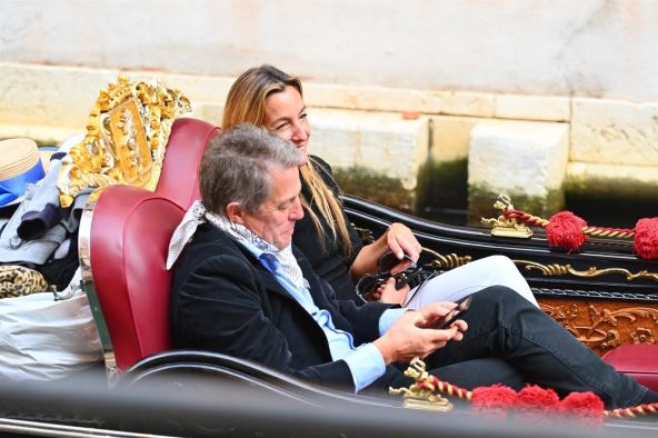 Hju Grant (60) i njgova supruga Ana Eberstajn (41) fotografisani su dok su uživali u vožnji gondolom u Veneciji gde provode odmor.