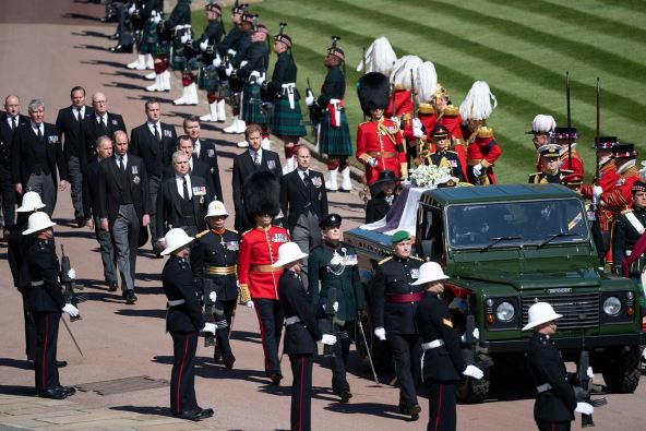 Prisutni na sahrani pešačili su tokom ceremonije iza pomenutog Land Rovera, ali ne i kraljica. Njeno Veličanstvo se vozilo u Bentli Stejt limuzini.