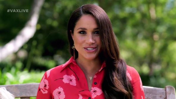 Nasmejana i obučena u jarko crvenu haljinu sa cvetnim dezenom, Megan je govorila o vakcinama, podršci ženama i ženama svih rasa.