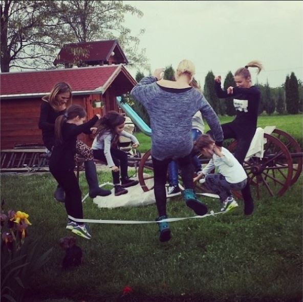 Ponosne mame se ne libe da preskaču lastiš sa svojim ćerkama, Hanom i Petrom. Ne zna se ko je bolji i uspešniji, ali igri nikad kraja. Čini se da i Nataša i Kristina podjednako uživaju.