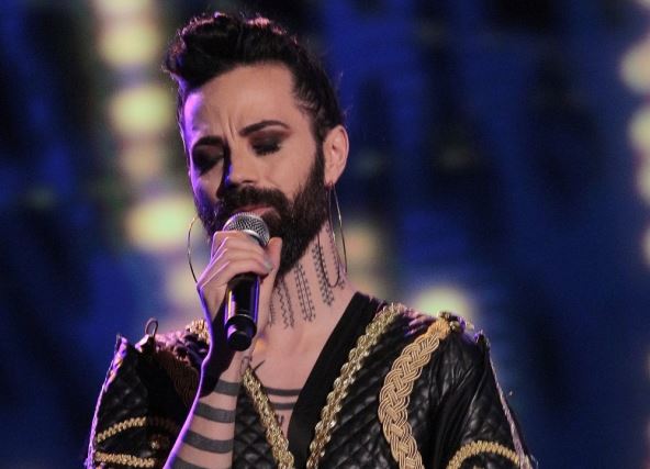 Obukao je glamuroznu haljinu od tila sa otvorenim leđima, imao je crni turban na glavi, a ni njegova šminka nije prošla nezapaženo. Spremno je pozirao okupljenim fotografima.