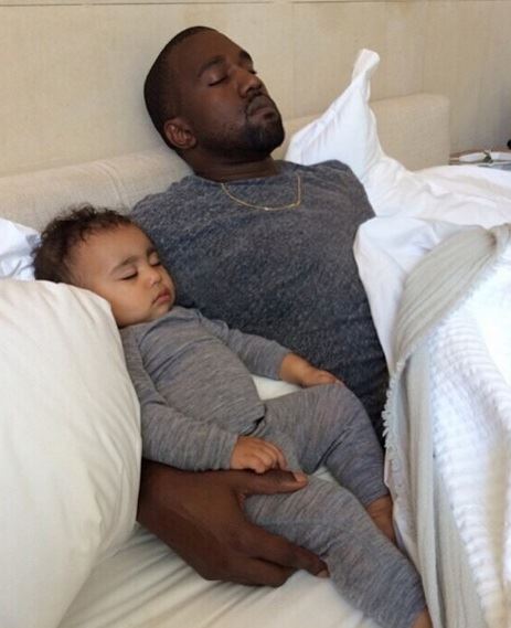 U isto vreme Kim je na Instagramu postavila i fotografiju Kanja i Nort kako zagrljeni spavaju uz čestitku mužu za Dan očeva.