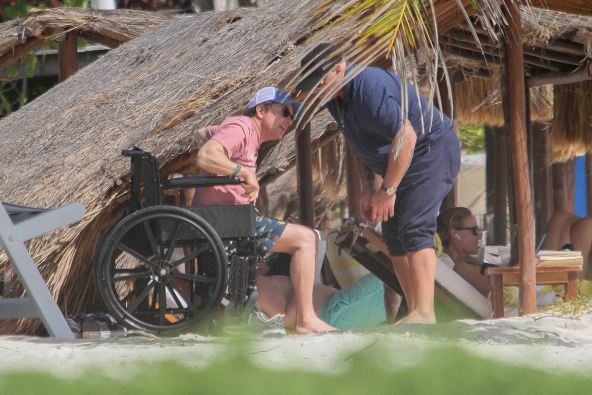U javnosti se retko pojavljuje, ali sada je napravio izuzetak pa se sa suprugom Trejsi Polan odmarao na plaži u Tulumu, a društvo im je pravilo nekoliko ljudi koji su mu pomogli pri kretanju.