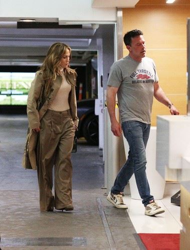 Zatim su došli Ben Aflek i Dženifer Lopez u pratnji obezbeđenja. Par je viđen u kolima kako se se zajedno smeju i ćaskaju. Ovom prilikom Ben je nosio burmu koja mu je nedostajala na ruci prilikom proteklog fotografisanja u javnosti.