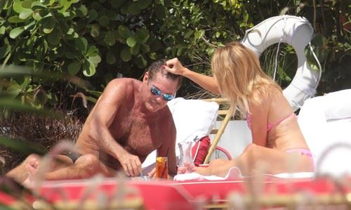 U stopu ga prati njegova žena Hejli koja je od glumca i govornika mlađa čak 27 godina.
