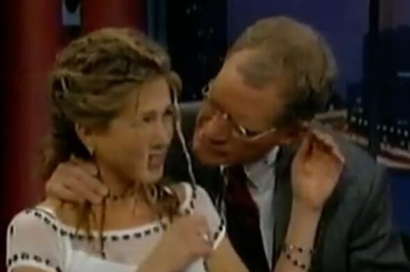 Dejvid Leterman je iznenada prekinuo svoja pitanja tokom intervjua sa Dženifer Aniston 1998. godine kako bi sisao pramen njene kose.