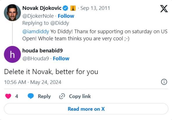 Novak Đoković našao se u nezavidnoj situaciji nakon što je njegovo prijateljstvo sa Šonom Didijem Kombsom, poznatijim kao Paf Dedi, stavljeno pod lupu posle hapšenja kontroverznog repera.