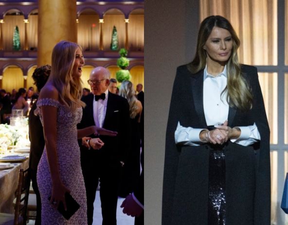 Ivanka je ovom prilikom nosila belu, svetlucavu haljinu Oskara de la Rente. Priča se da je haljina napravljena po meri, kako bi ispratila liniju ćerke predsednika Amerike.