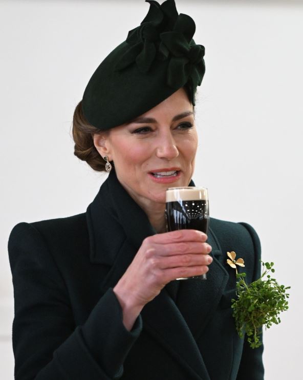 Princeza od Velsa, Kejt Midlton došla je na proslavu Dana Svetog Patrika u ime karaljevske porodice. Tom prilikom obukla je tamno zeleni kaput, crni šešir, dok je na reveru imala zakačen broš u obliku zlatne deteline.