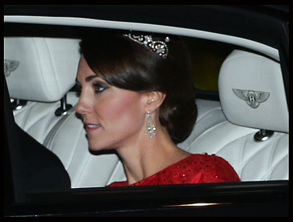 Čak 170 gostiju okupilo se na svečanosti u Bakingemskoj palati koja je održana u čast kineskog predsednika Si Đinpinga. A ovo je prva takva prilika na kojoj se je pojavila i Kejt. Prema protokolu, ženske članice kraljevske porodice tokom takvih svečanosti moraju da budu obučene u večernje haljine i da nose tijare koje im pozajmljuje kraljica.