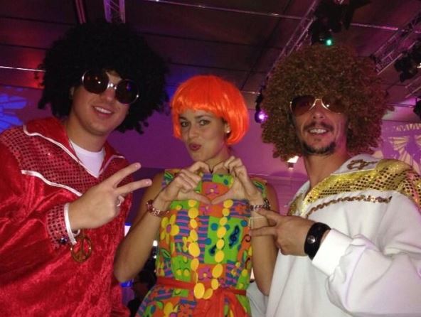 Florescentno narandžasta perika i šarena haljina u paru sa dugom ogrlicom i helankama u jarko roze boji učinili su da Ana svojom pojave izmami osmehe svih prisutnih.
