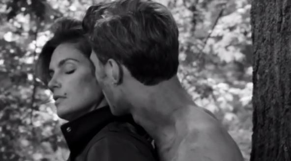 Sindi je pozirala u šumi sa mlađim muškarcem, obučena u košulju, bez donjeg veša. U pojedinim kadrovima naziru joj se grudi.