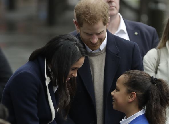 Buduća mlada Megan Markl zagrlila je devojčicu koja joj je oduševljeno dobacila da želi da postane glumica kao i ona, nakon čega ju je Hari izveo iz gomile đaka koji su se okupili da pozdrave prinčevski par