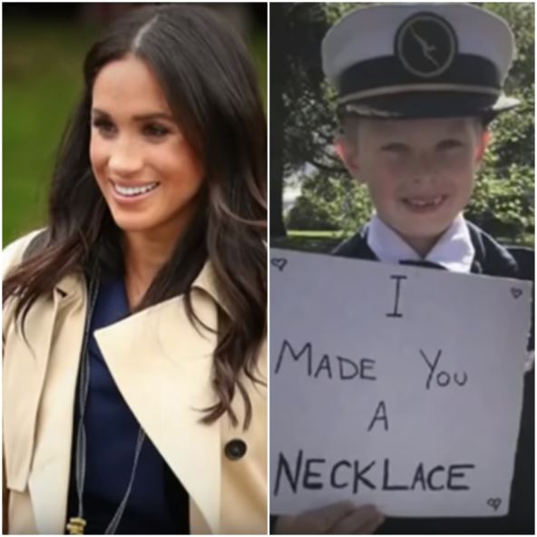 Naime, na natpisu je pisalo"Napravio sam ti ogrlicu", a čim je Vojvotkinja od Saseksa spazila mališana prišla mu je sa širokim osmehom na licu, prihvatila poklon i bez oklevanja ogrlicu stavila oko vrata.