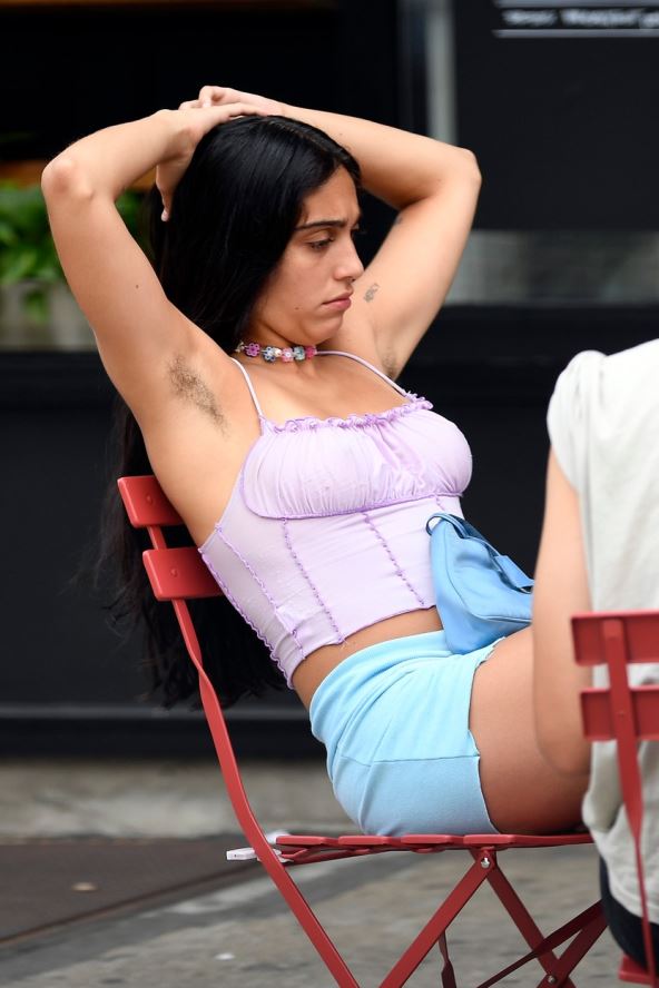Lurd je štala u providnom topu, bez grudnjaka, često se protežući i pokazujući paparacima svoje neobrijane pazuhe.