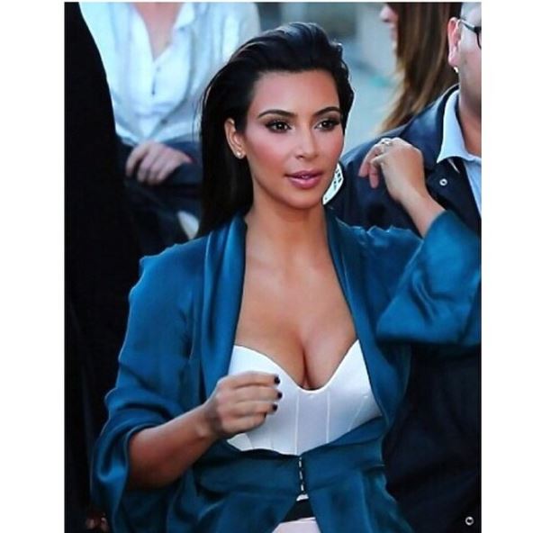 Po navici, Kim je istakla oči tehnikom šminkanja "smokey eyes", a usne neutralnom nijansom, koju je i proslavila.