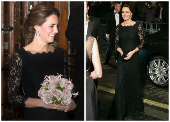 Za ovu priliku, Kejt je odabrala dugu, čipkanu, crnu haljinu, ispod koje se diskretno nazirao trudnički stomak.