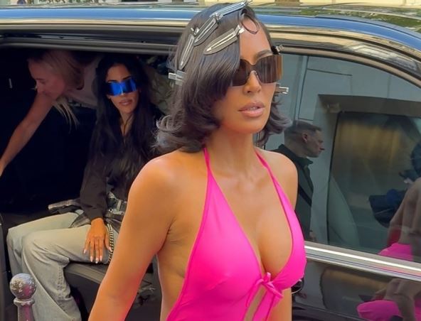 Uska roze haljina koja otkriva grudi u stilu Merlin Monro. Kosa stilizovana kao kod zvezda starog Holivuda, a na nogama salonke u odgovarajućoj boji - Kim Kardašijan je privukla veliku pažnju paparaca kada se pojavila u Parizu ispred studija Balansijaga kako bi isprobala odeću za njihov predstojeći šou.