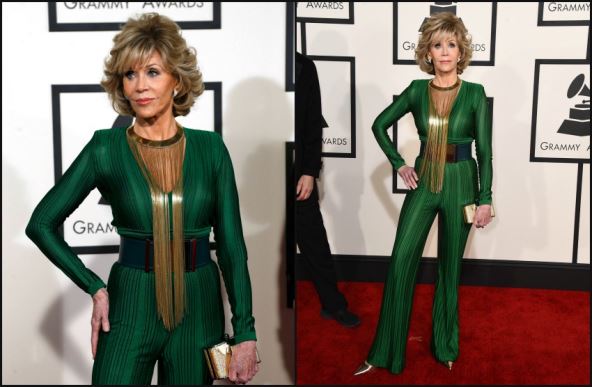 Holivudska veteranka, glumica Džejn Fonda, izazvala je senzaciju na dodeli Gremija pojavivši se u fantastičnom zelenom kombinezonu.