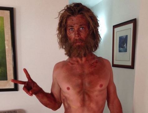 "Više mislim o hrani nego o bilo čemu drugom", rekao je za Entertainment Tonight. Hemsvort glumi lik Ovena Šejza, mornara koji je doživeo brodolom nakon što mu je brod uništio kit ubica.