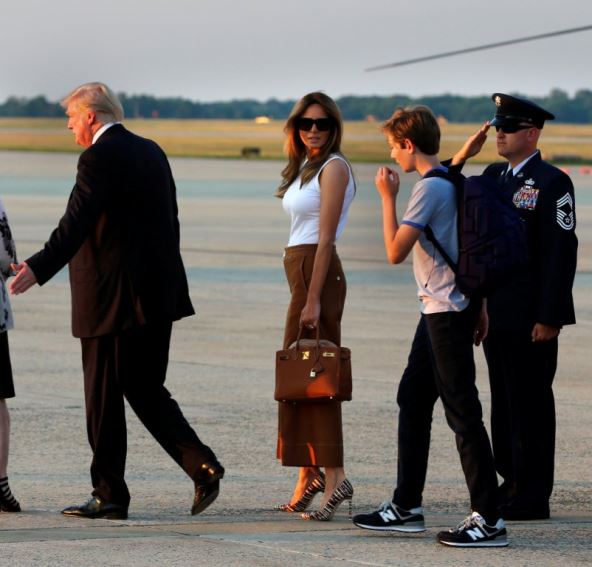 Melanija i Baron su predsedničkim avionom Air Force One u pratnji Donalda Trampa sleteli u vazdušnu bazu Andrevs u predgrađu Vašingtona. Dečak se tokom putovanja igrao zvrkom koji je trenutno u modi.