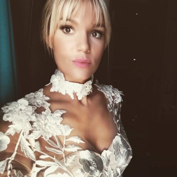 Ona je ponela dugačku belu elegantnu haljinu sa zanimljivom čipkom, koja je otkrivala pojedine delove njenog tela i koja joj je stajala kao salivena.