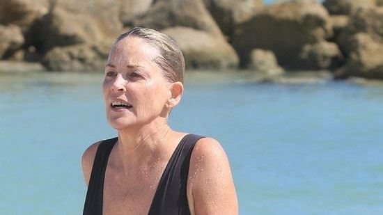U tamno ljubičastom jednodelnom kupaćem kostimo Šeron Stoun (59) plenila je poglede na plaži u Miamiju...