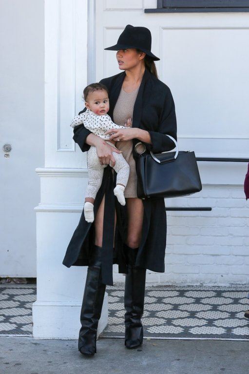 Trudnički stomak je prvi put pokazala kada je išla ne večeru sa svojim suprugom Džonom Ledžendom. Za ovu priliku odabrala je široku crnu košulju ispod koje se nazirao stomačić. Lepa trudnica ni u trudnoći ne silazi sa visokih potpetica, ali moramo priznati da joj ova kombinacija, nesvakidašnja za trudnice, odlično stoji.