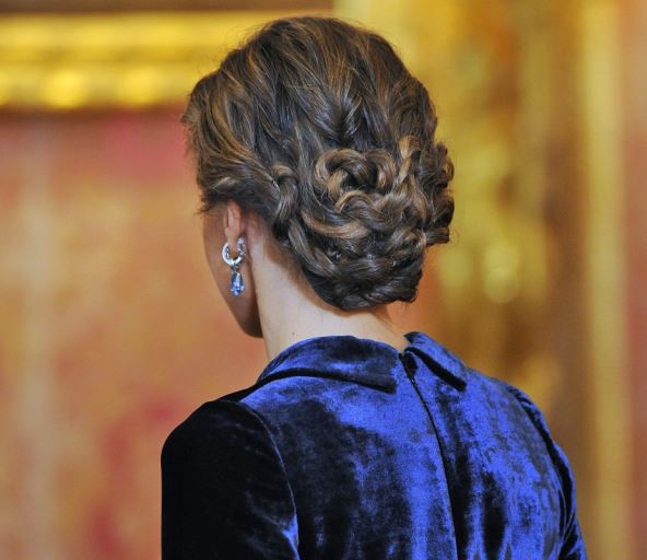 Elegantna, neobična punđa doprinela je eleganciji i sofisticiranom izgledu kraljice Leticije, kao i prelepe safirne minđuše koje je za ovu priliku ponela.