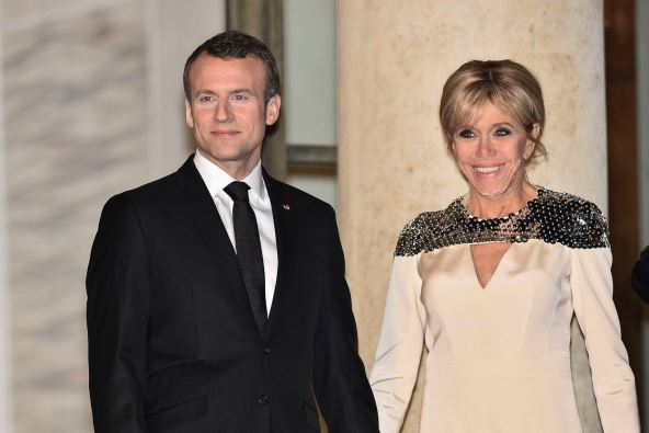 Na svečanoj večeri 64-godišnja Brižit Makron zablistala je u svilenoj beloj haljini do poda, koju su činili detalji poput suptilnog dekoltea sa V-izrezom i sjajnih šljokica pozicioniranih na ramenima i okovratniku kreacije.