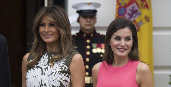 Melanija Tramp je za ovu priliku odabrala maslinasto zelenu haljinu sa belim detaljima srednje dužine, dok se kraljica Leticija odlučila za pink haljinu bez rukava sa potpisom Majkl Korsa, a obe dame su bile u salonkama koje su njihov zaštitni znak.