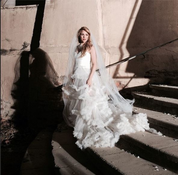 Kolumbijka, zanosna kao i uvek, obučena u predivnu belu haljinu sa velom na glavi pozira u romantičnom okruženju.