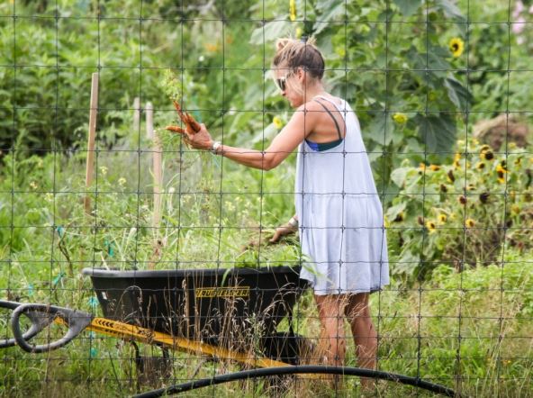 Ona sama vodi svoju decu u školu i brine se o svojim najbližima. To je dokazala i kada su je fotografi uslikali kako sa suprugom Metjuom Broderikom ubira sveže povrće za svoju porodicu.