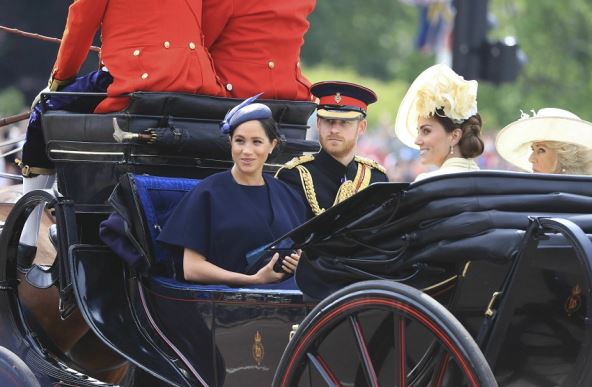 Vojvotkinja od Saseksa, koja se pojavila u teget kombinaciji od glave do pete, provezla se kočijom u pratnji supruga u uniformi, a pridružile su im se vojvotkinja od Kembridža Kejt Midlton i vojvotkinja od Kornvola Kamila Parker.
