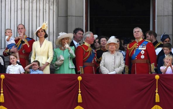 Današnja velika proslava Pozdrav bojama okupila je članove britanske kraljevske porodice na balkonu Bakingemske palate za tradicionalno zajedničko posmatranje spektakla na nebu.