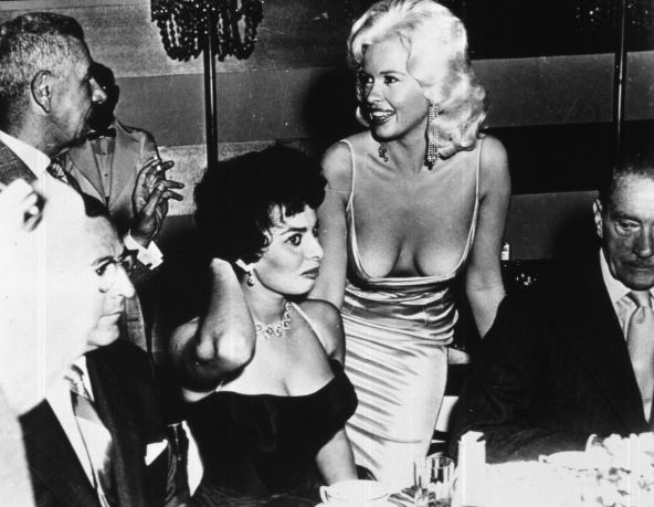 – „Paramaunt“ je te večeri organizovao žurku u moju čast. Sva velika glumačka imena su bila tamo, bilo je neverovatno. A onda se poslednja pojavljuje Džejn Mensfild. Znala je da su sve oči uprte u nju. Došla je direktno za moj sto. A onda je sela. Slušajte, pogledajte i sami fotografiju, pa mi recite gde mi je zalutao pogled? Tačno, na njene bradavice, ali samo zato što sam se uplašila da će završiti na mom tanjiru! Na mom licu se vidi strah! Bojim se da će sve u njenoj haljini eksplodirati i završiti na stolu – objasnila je svojevremeno čuvena Sofija Loren.