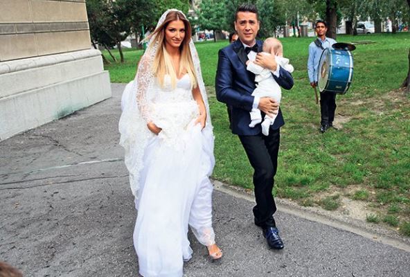 Kum s mladine strane bio je njen kolega Srđan Predojević, a s mladoženjine menadžer Bane Obradović. Mladenci su se pred crkvu dovezli u belom džipu, a ušli su sa zadnje strane. Sve vreme ih je pratilo obezbeđenje pokušavajući da spreči fotografe da ih slikaju. Mladoženja je u naručju nosio šestomesečnog sina Kostu.