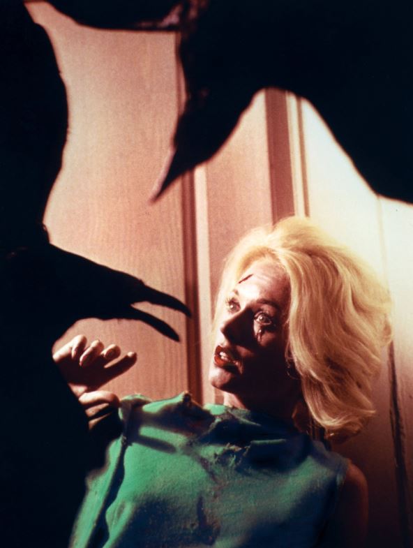 Sledilo je snimanje scene u kojoj je napadaju ptice dok je zarobljena u spavaćoj sobi. Pomoćnik reditelja joj je došao i rekao da su se mehaničke ptice pokvarile i da će scenu snimati s pravim pticama. Ona je hrabro ušla u kavez izgrađen u spavaćoj sobi i čekala trenutak kada će na nju pustiti podivljale ptice.