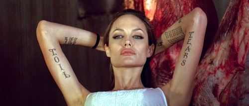 Obzirom da je javnosti interesantan svaki korak koji Anđelina Džoli napravi, izuzetak nisu ni njene tetovaže. U mnogim filmovima su prekrivane šminkom, a neke od njih je skinula ili zamenila novim natpisima. Uklonila je ime bivšeg muža Bilija Bob Tortona, prozor, kineski simbol smrti, a zmaja je prekrila krstom. Trenutno se na njenom telu nalazi 12 tetovaža od kojih svaka ima značenje. Neke od njih su „molitva za divlje u srcu, zatvorene kao u kavezu“ koju je imala i njena majka, „snaga volje“ na arapskom, latinski citat „što me hrani to me i uništava“, „znaj svoja prava“, molitvu od budustičkih simbola za sina Medoksa, geografske koordinate mesta gde su rođena njena deca.