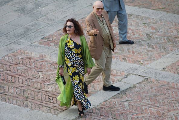 Modna dizajnerka Dajana von Furstenberg (78) jedna je od počasnih gošća na venčanju Džefa Bezosa i Loren Sančez u Veneciji. Obučena u prelepu dugu, šarenu haljinu sa zelenim ogrtačem, Dajan je došla u pratnji svog supruga, milijardera Brija Dilera.
