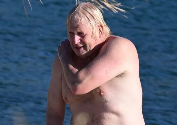 Dok je njegova supruga pokazala zadivljujuću figuru u kupaćem kostimu, Boris je izgledao podgojeno i krajnje umorno.