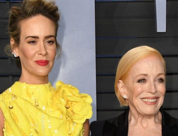 43-godišnja Sara Polson za ovu je priliku odabrala žutu haljinu Marka Džejkobsa, koju je upotpunila crnim dugim rukavicama, dok je njena životna partnerka, 75-godišnja glumačka legenda HolandTejlor odabrala crno odelo.