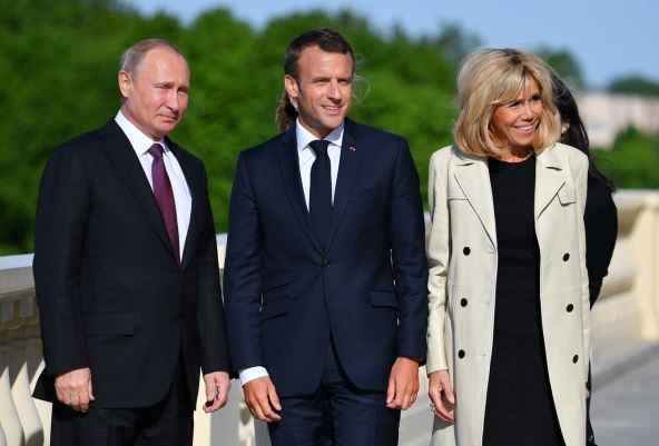 Susret predsedničkog para Makron i Vladimira Putina dogodio se u veličanstvenoj Konstantinovoj palati, letnjoj rezidenciji Petra Velikog dvadesetak kilometara udaljenoj od Sankt Peterburga. Taj ogromni dvorac koji gleda na more bio je domaćin sastanka na vrhu skupine G20 2013. godine. S obzirom na novac koji je uložen u raskošnu obnovu, zdanje zovu i "Putinovom palatom."