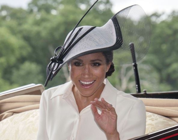 Protokol je izbegla i na prvom pojavljivanju u Askotu na proglašenju pobednika kraljevske konjičke trke Frankija Vetorija. Kraljevska tradicija nalaže da svaki pripadnik porodice nosi bedž sa svojim imenom i dok je njen suprug ponosno nosio svoj, Megan na beloj Živanšijevoj haljini nije imala nikakav "dodatak". Ali ovoga put je sve zadivila šeširom.