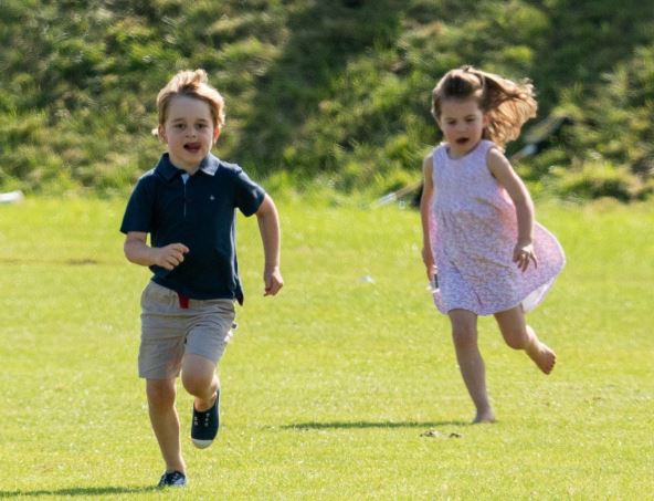 Malena naslednica bila je preslatka u bledoroza haljinici s podignutim prednjim delom kose i dečjim sunčanim naočarama sa roze okvirima. Zaigrani stariji Džordž je nosio kratke pantalone bež boje i tamnoplavu majicu s kragnom.