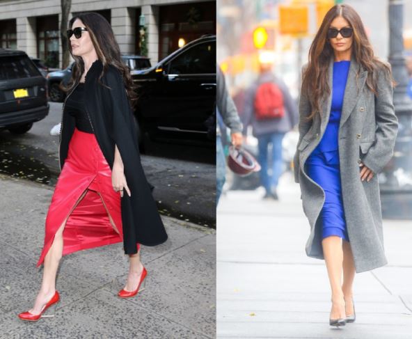 Prezgodna glumica prvo se pojavila u sredu u prelepoj plavoj midi haljini preko koje je nosila sivi kaput sa dvostrukom kopčanjem. Na nogama je nosila klasične salonke koje su isticale njene duge noge.