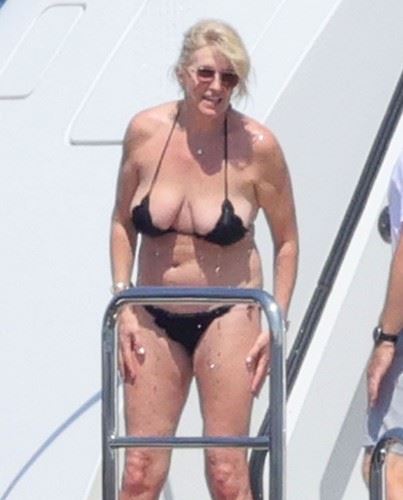 53- godišnja bivša manekenka je iskoristila momenat da se razbaškari na jahti vrednoj 60 miliona evra dok se sunčala u minijaturnom bikiniju.