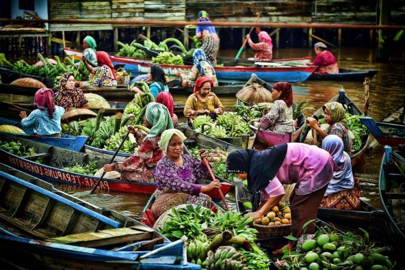 Pijaca na vodi postala je turistička atrakcija Indonezije