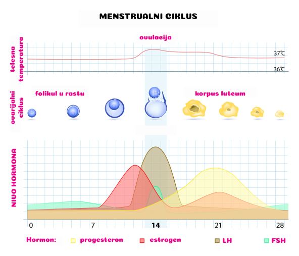 Ovulacija, sazrevanje jajne ćelije i njen put kroz jajovod, predstavlja samu sredinu ciklusa, koja se, u idealnim uslovima, dešava oko četrnaestog dana, a za rast folikula, količinu i kvalitet jajnih ćelija u jajnicima već se postarao folikulostimulišući hormon.